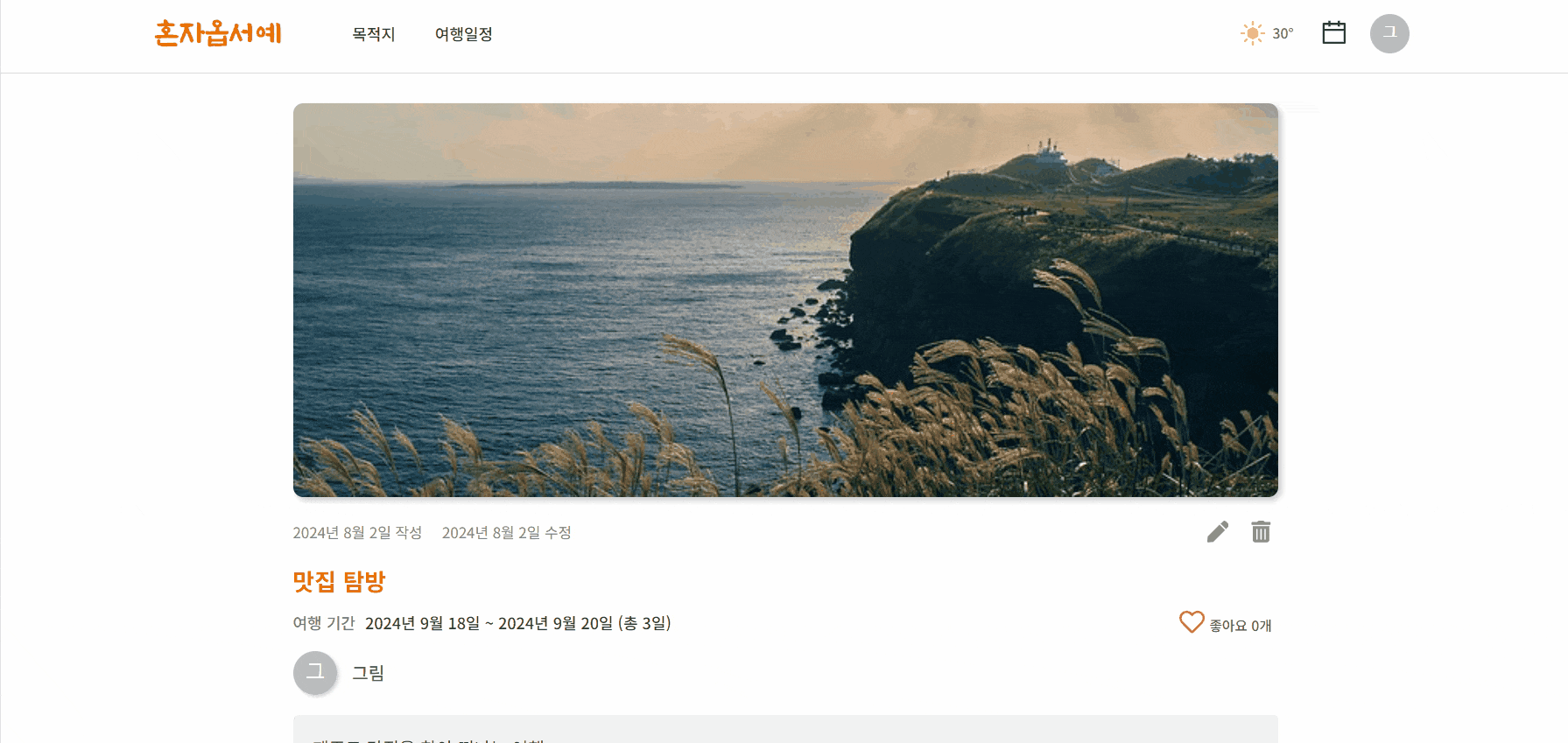 업데이트 되지 않는 여행 일정 이미지