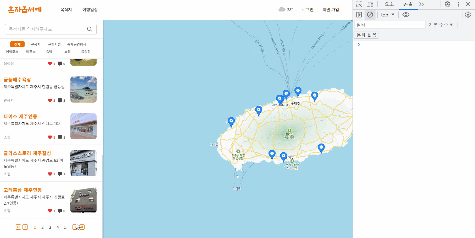 프로젝트 막바지에 접어들었을 때, 내가 맡은 목적지 페이지가 잘 작동하는지 최종 점검했다.