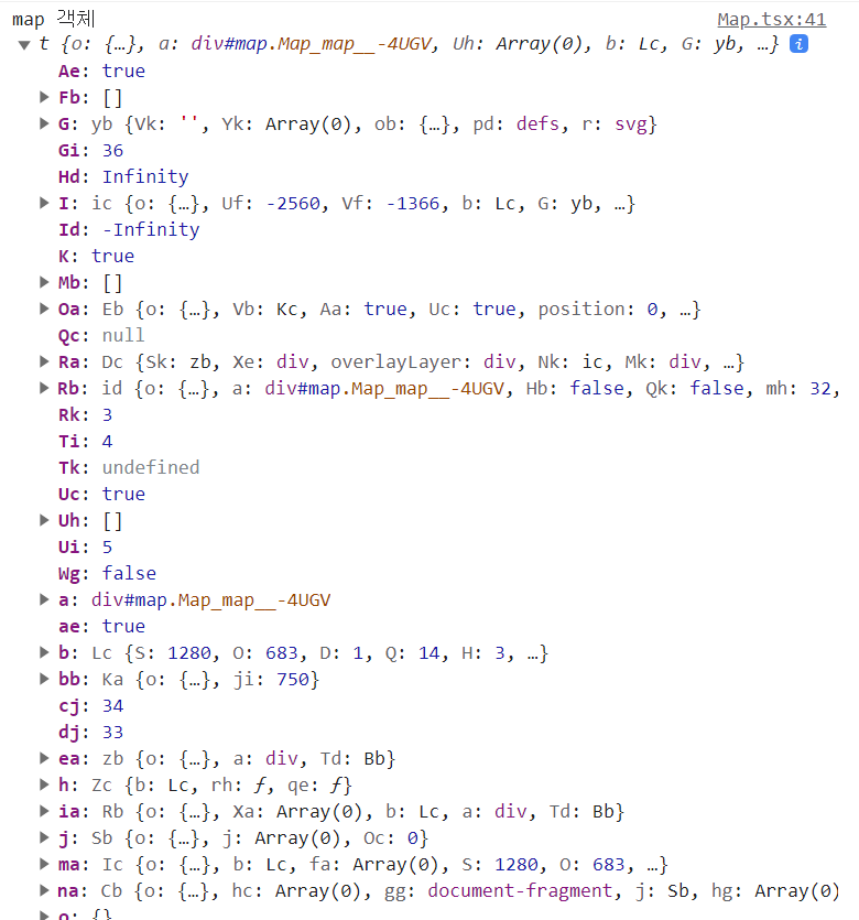 map 객체의 type은 여전히 제공되지 않아, any로 지정해야 했다.