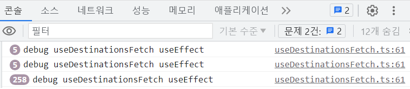 console.log("debug useDestinationsFetch useEffect"); //디버깅을 위해 추가한 line